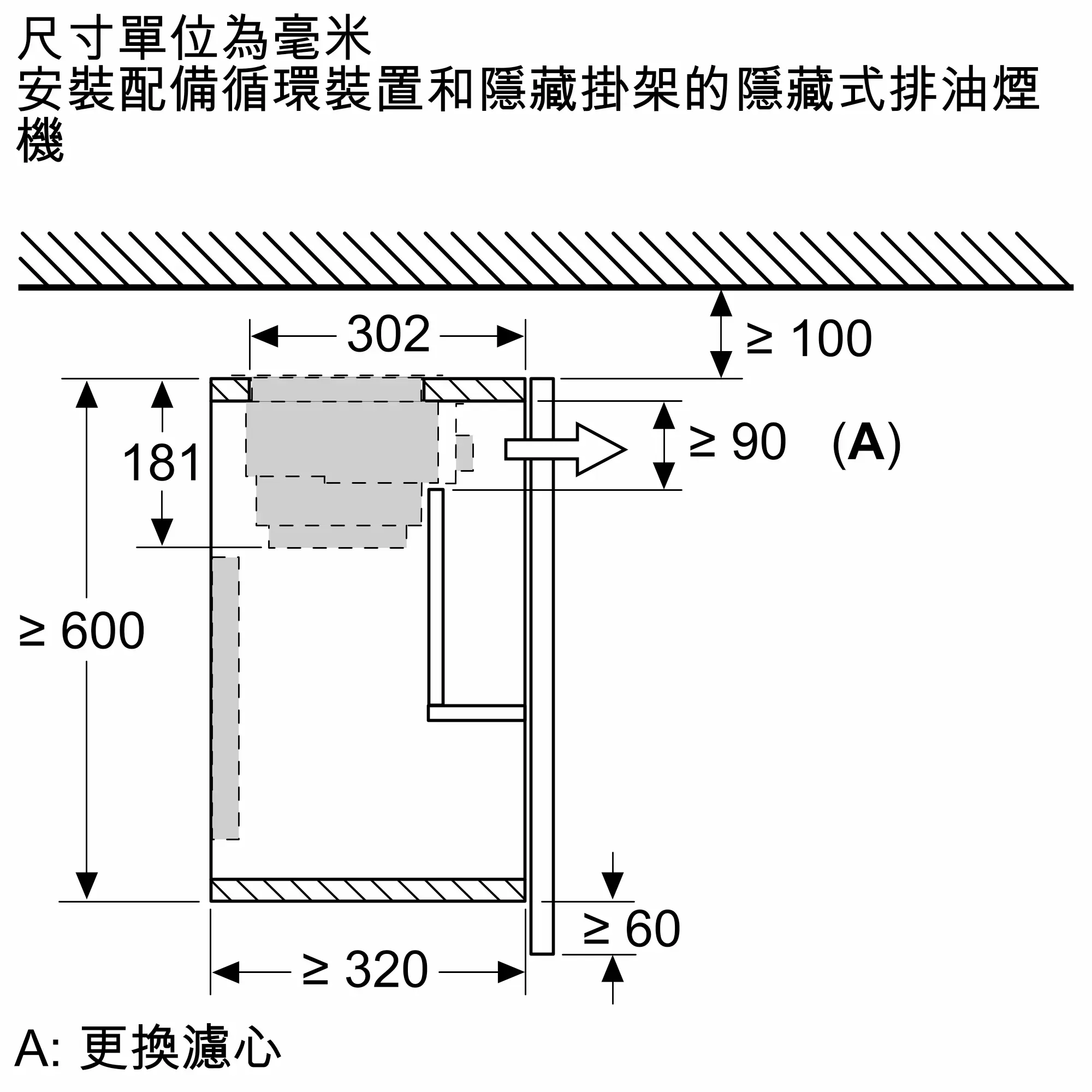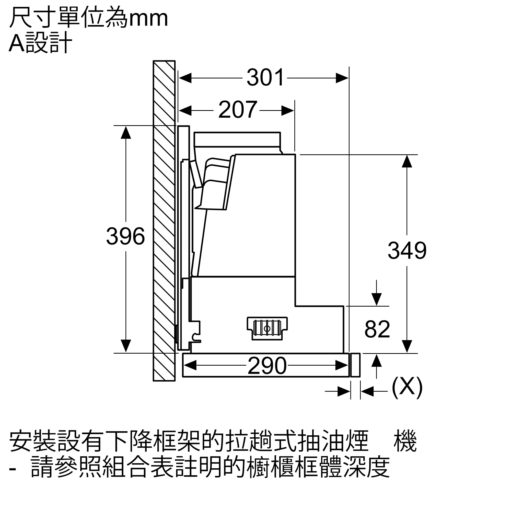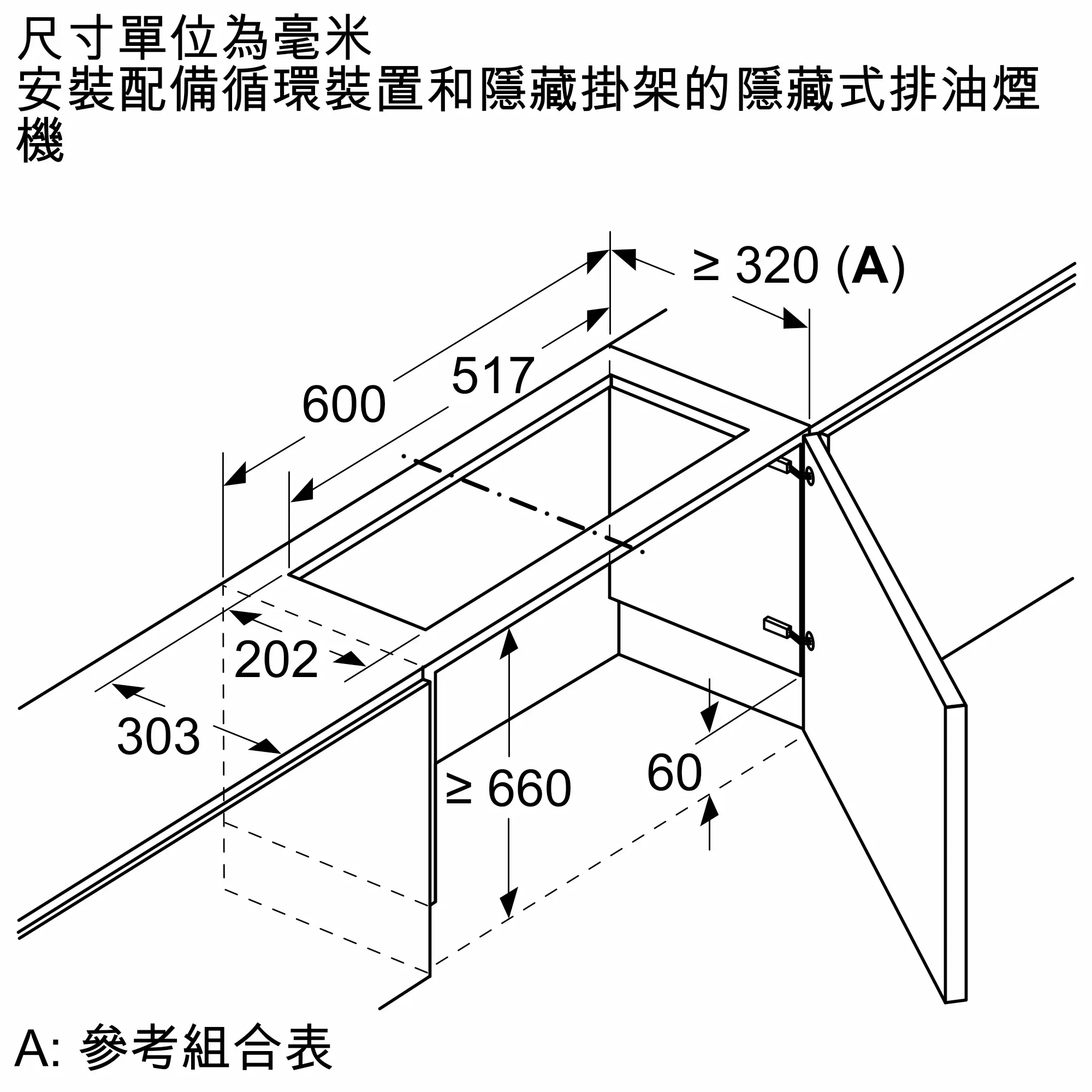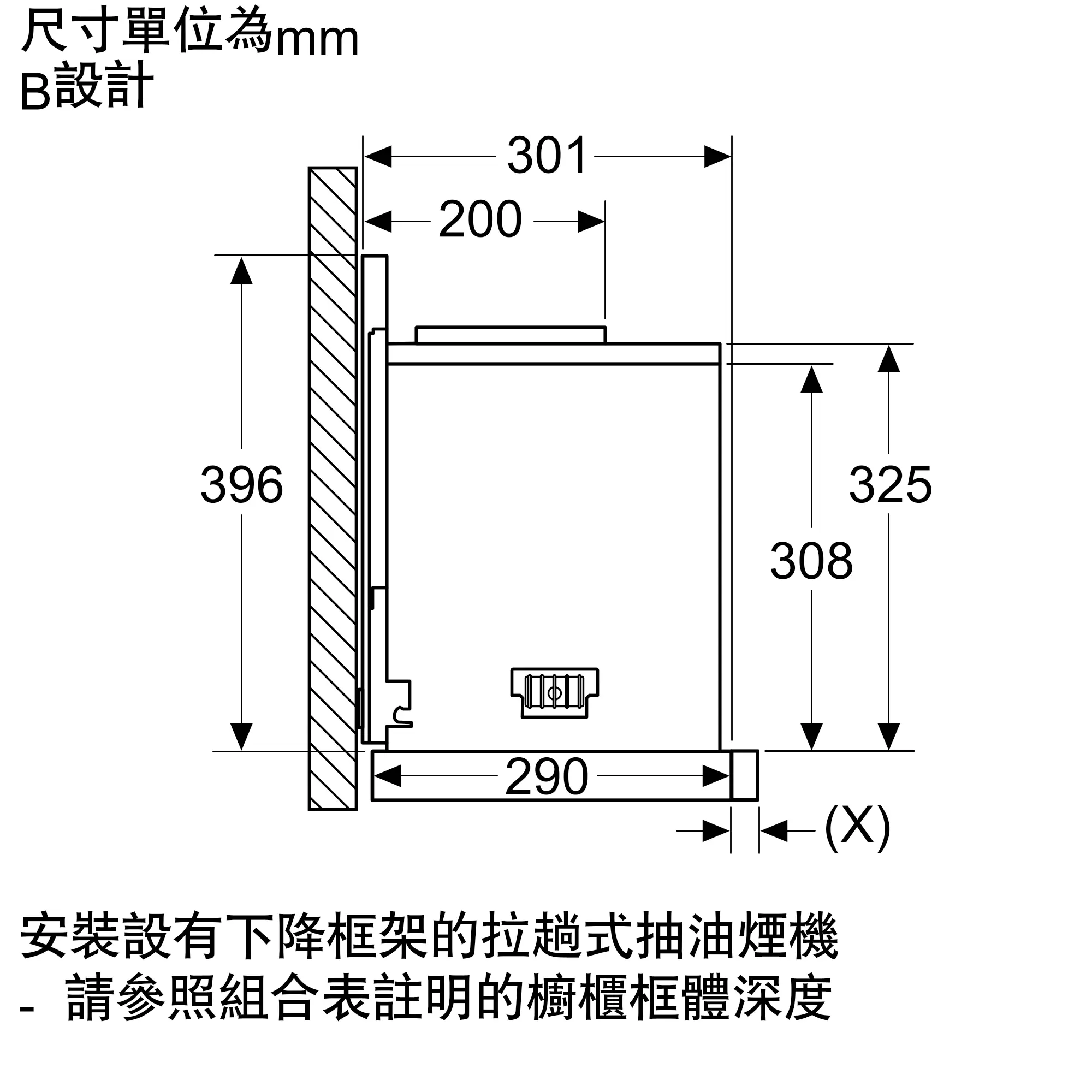 安裝後油煙機可完全隱藏於廚櫃內
